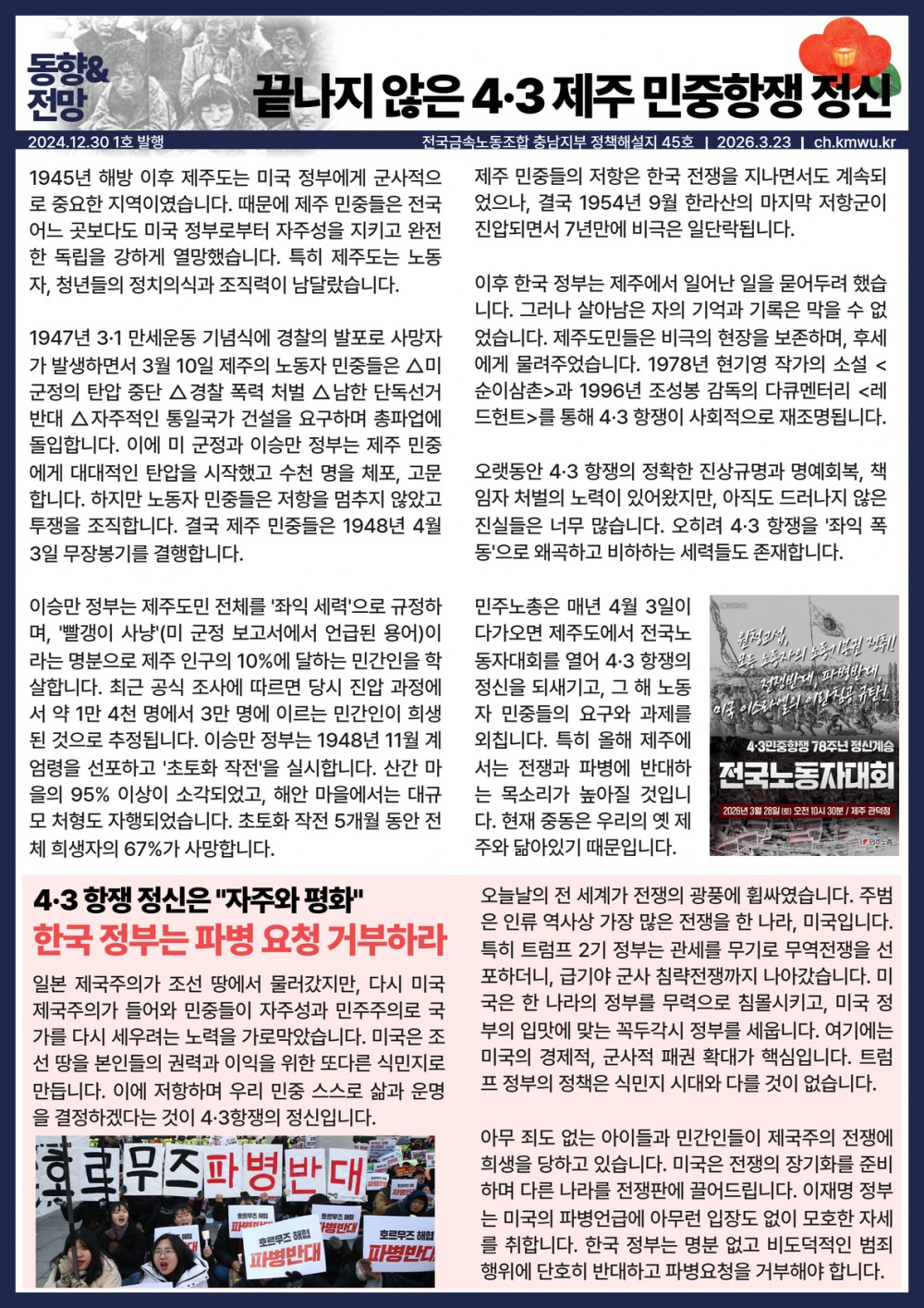 충남 | [동향&전망] 45호 <끝나지 않은 4.3 제주 민중항쟁 정신>