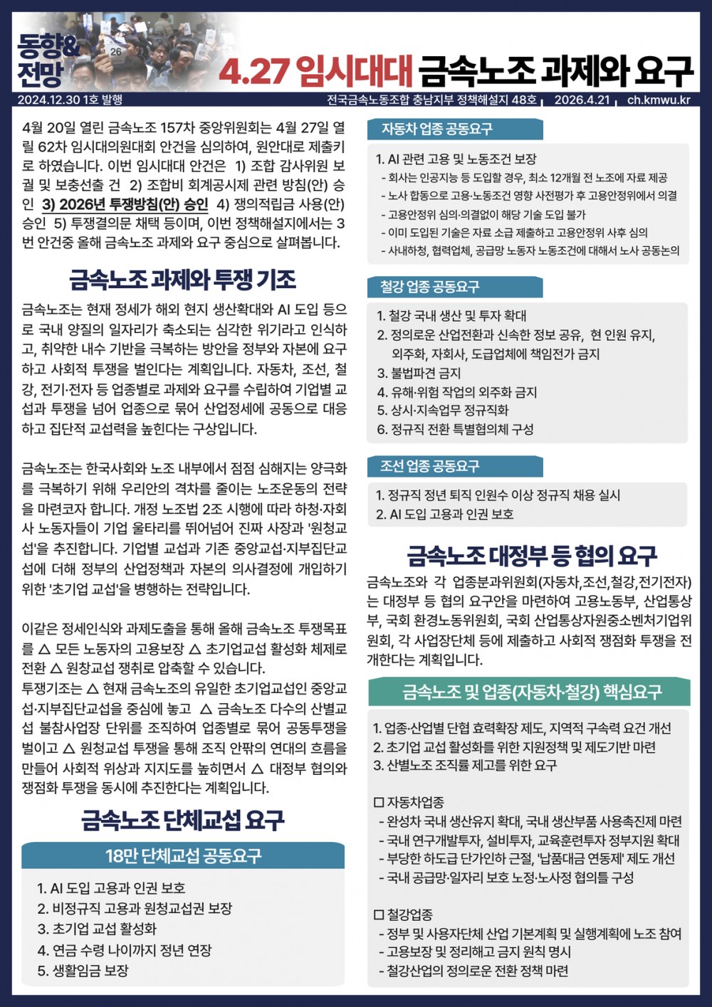 충남 | [동향&전망] 48호 <4.27 임시대대 금속노조 과제와 요구>