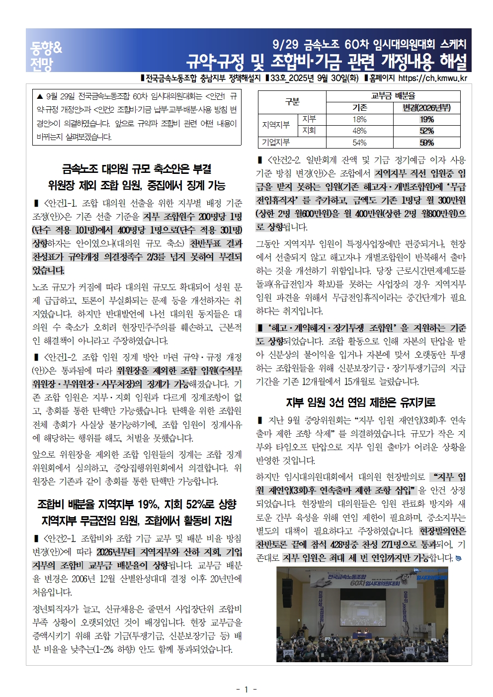 충남지부 정책해설지 33호 <금속노조 60차 임시대대 : 규약 및 조합비-기금 개정 해설>