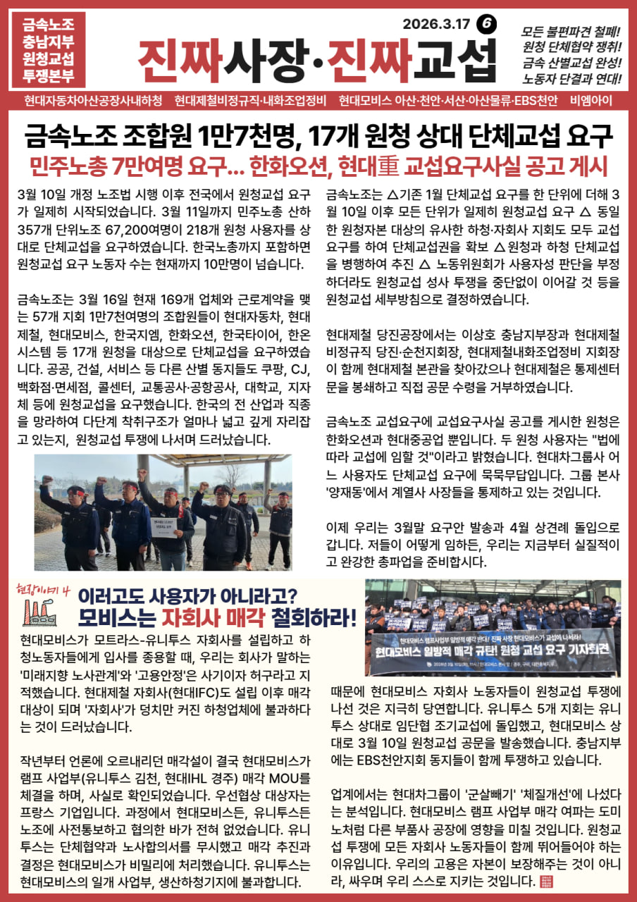 [충남원청투본] 6호 금속노조 1만7천여명, 17개 원청 상대 단체교섭 요구
