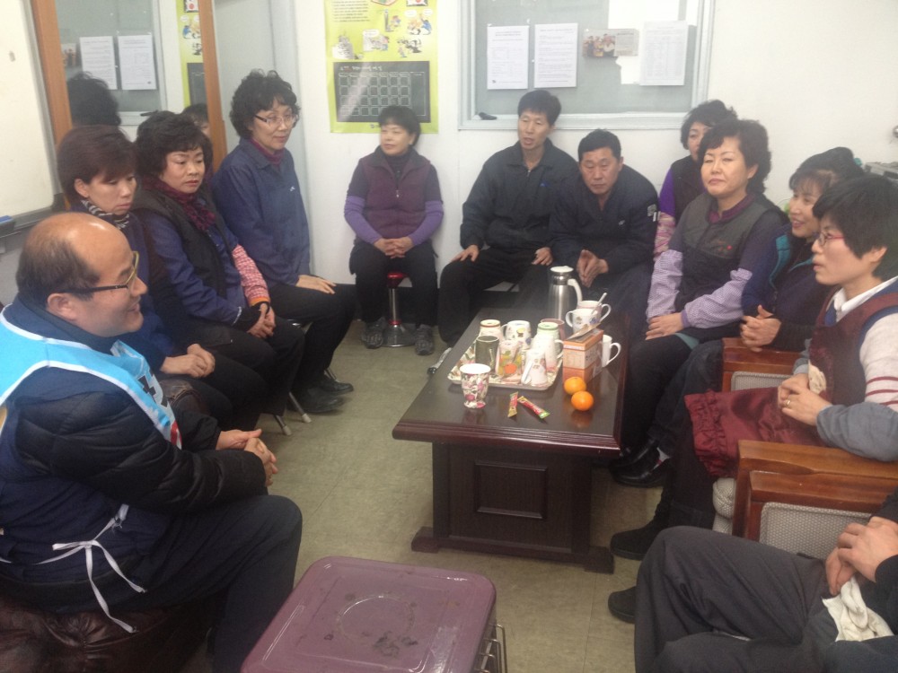 지부가 1/16(수) KDK분회와 JCC지회를 방문했다. 1/30(수) 총파업을 힘있게 조직하기 위해서이다. 정리해고, 불법파견, 노조파괴를 끝장내기 위한 이번 총파업의 의미를 조합원들에게 직접 설명하고 동참을 호소했다.