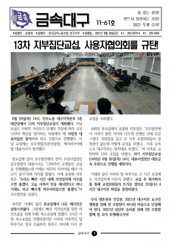 금속대구 11-61호 페이지 정보 작성자 금속대구 작성일21-08-20 09:50 조회77회 첨부파일 금속대구 11-61호.hwp (595.5K) 3회 다운로드 DATE : 2021-08-20 10:32:00 본문 금속대구 11-61호 발행합니다. 현장배포 부탁드립니다. 이전글 다음글 목록