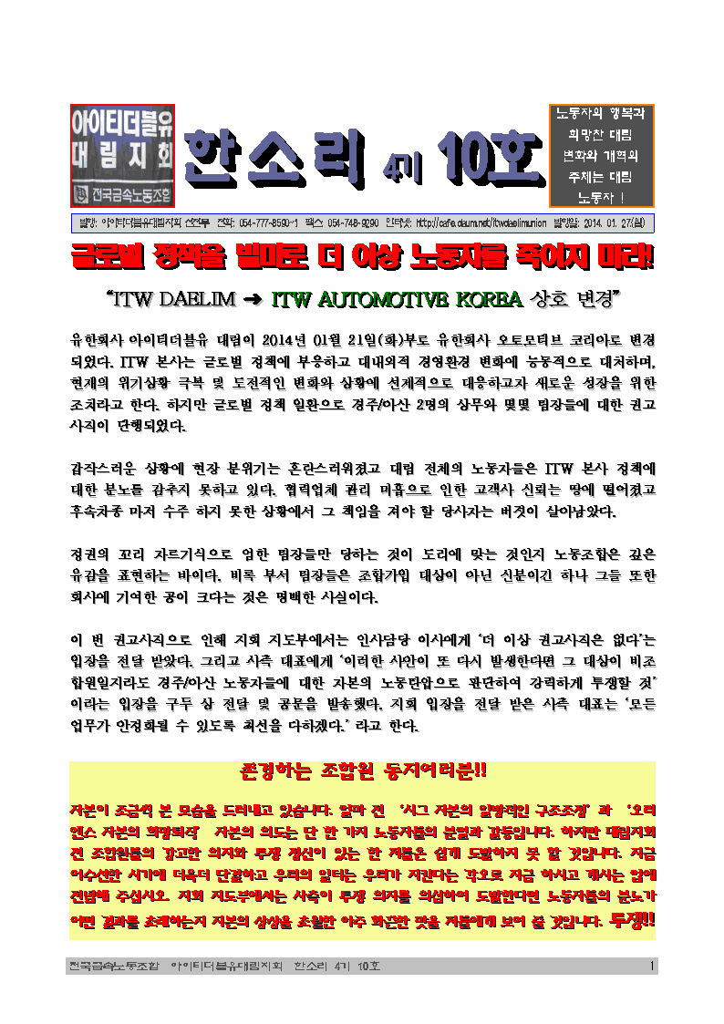 [아이티더블유 대림지회] 한소리 4-10호 > 소식지/선전물