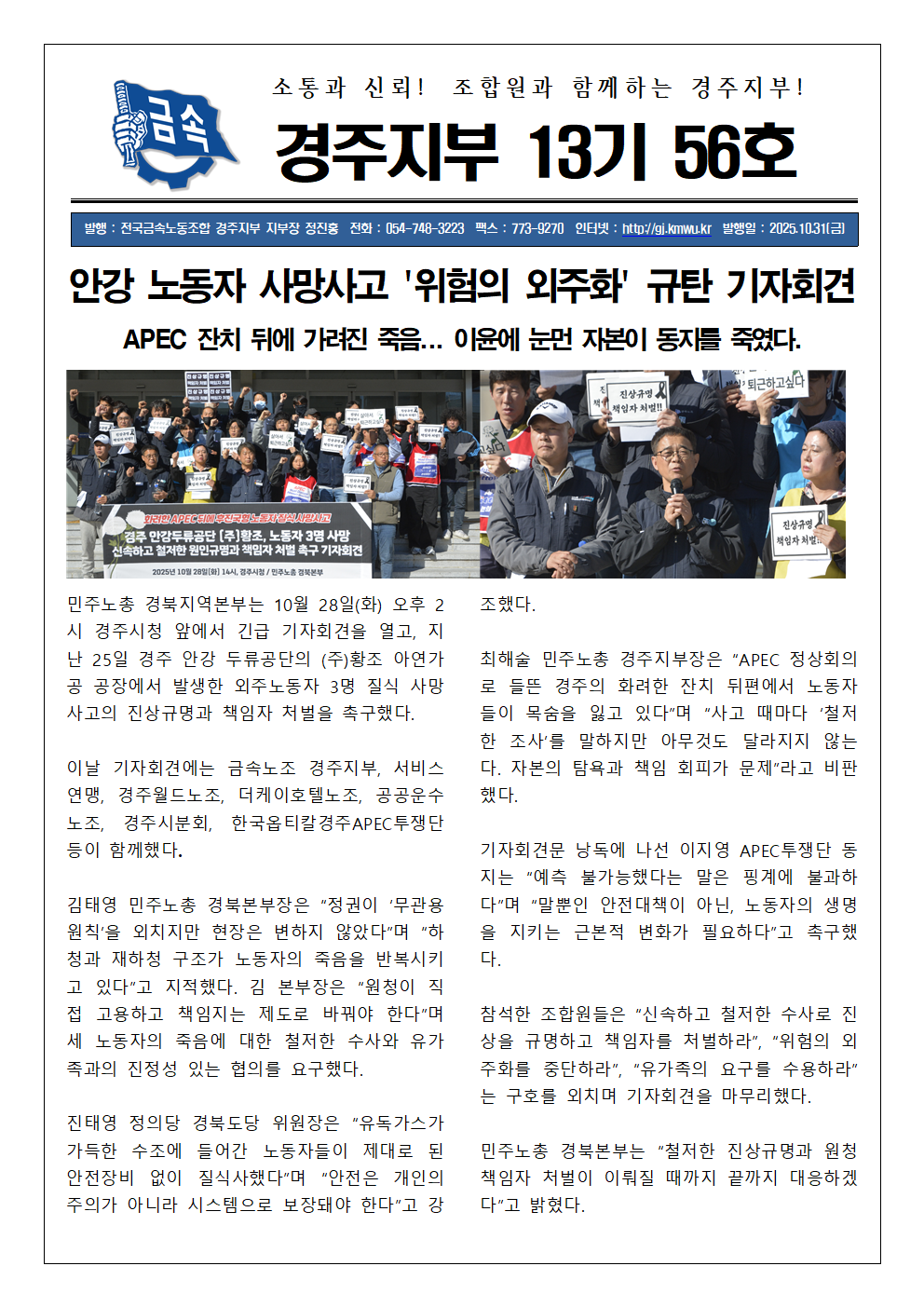 금속노조 경주지부 소식지 56호 (251031)