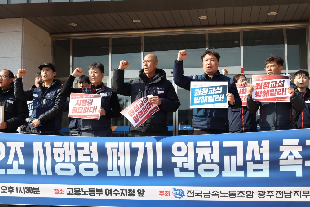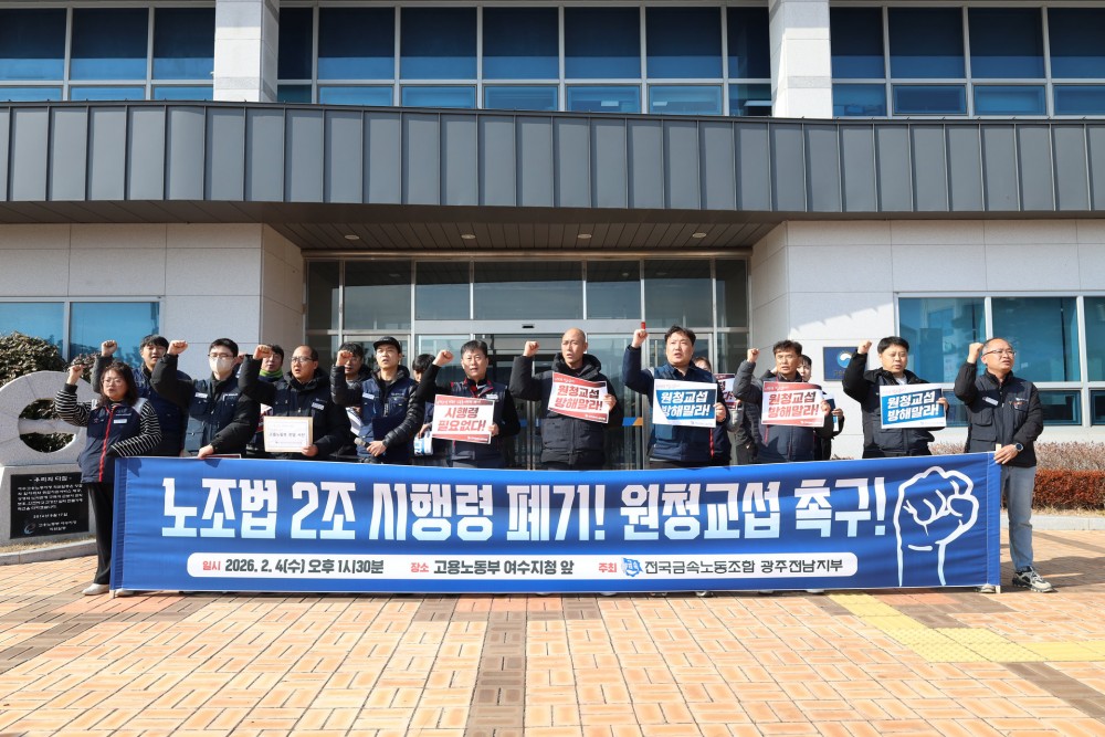 ■ 제목: 원청교섭 촉구 및 노조법 시행령 폐기를 위한 금속노조 광주전남지부 기자회견