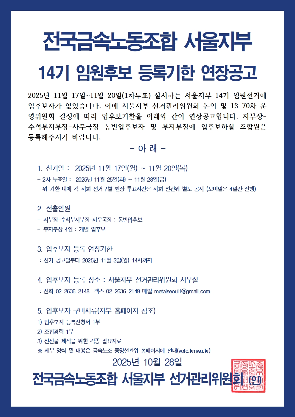 14기 서울지부 임원후보 등록기한 연장공고 > 지부소식